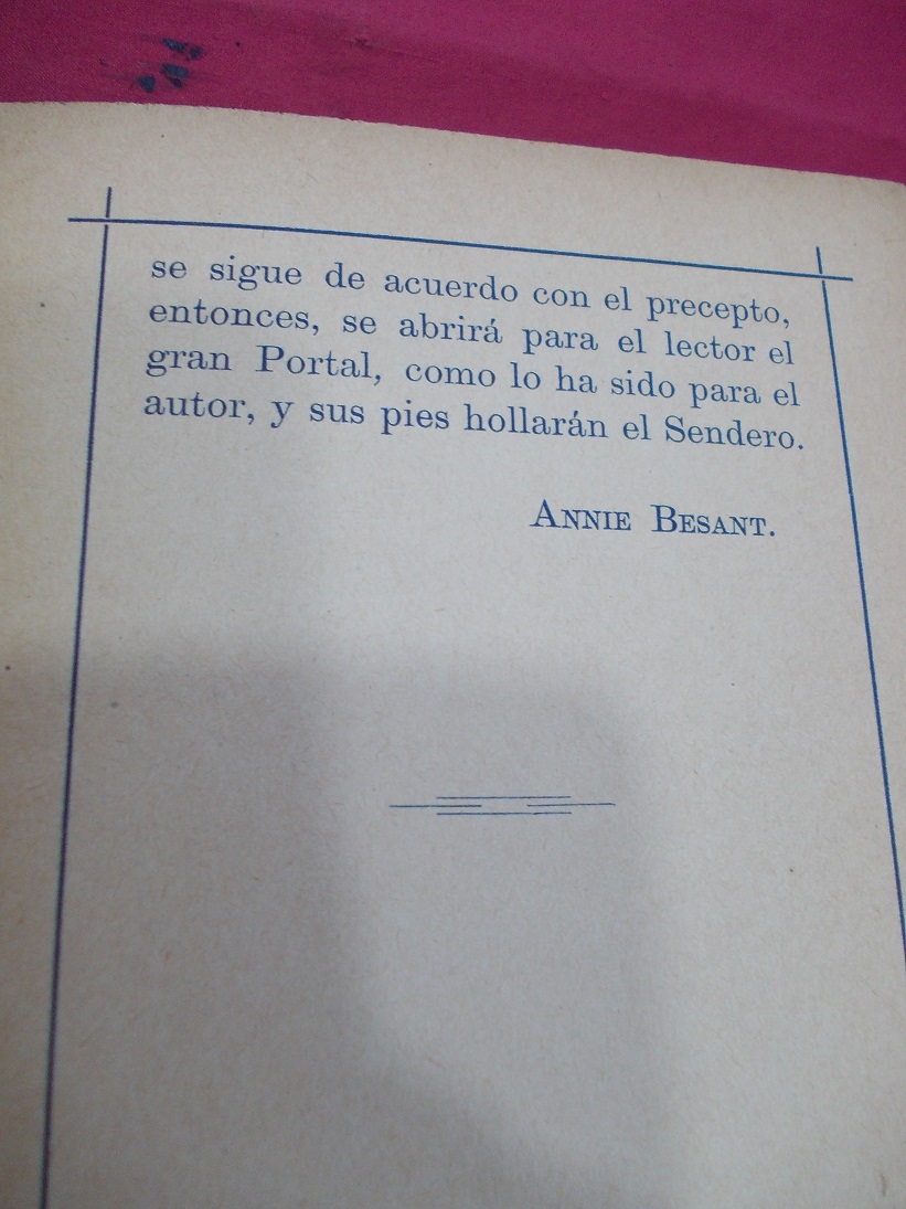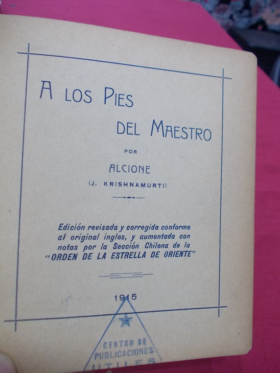 LIBRO: A LOS PIES DEL MAESTRO (por ALCIONE) PREFACIO: ANNIE BESANT TAPAS DE CUERO (Tamaño: 18cm X 14cm) 87 PAGINAS / Editado el año 1915 IMPRENTA ROYAL (de AUGUSTO MEYTRE)-VALPARAISO VALOR: $30.000.- Treinta mil pesos chilenos |